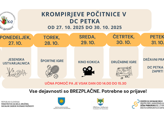 Spoštovani, v Dnevnem centru za otroke in mladostnike Koper - PetKA, občina Ankaran pripravljamo po...03.10.2025