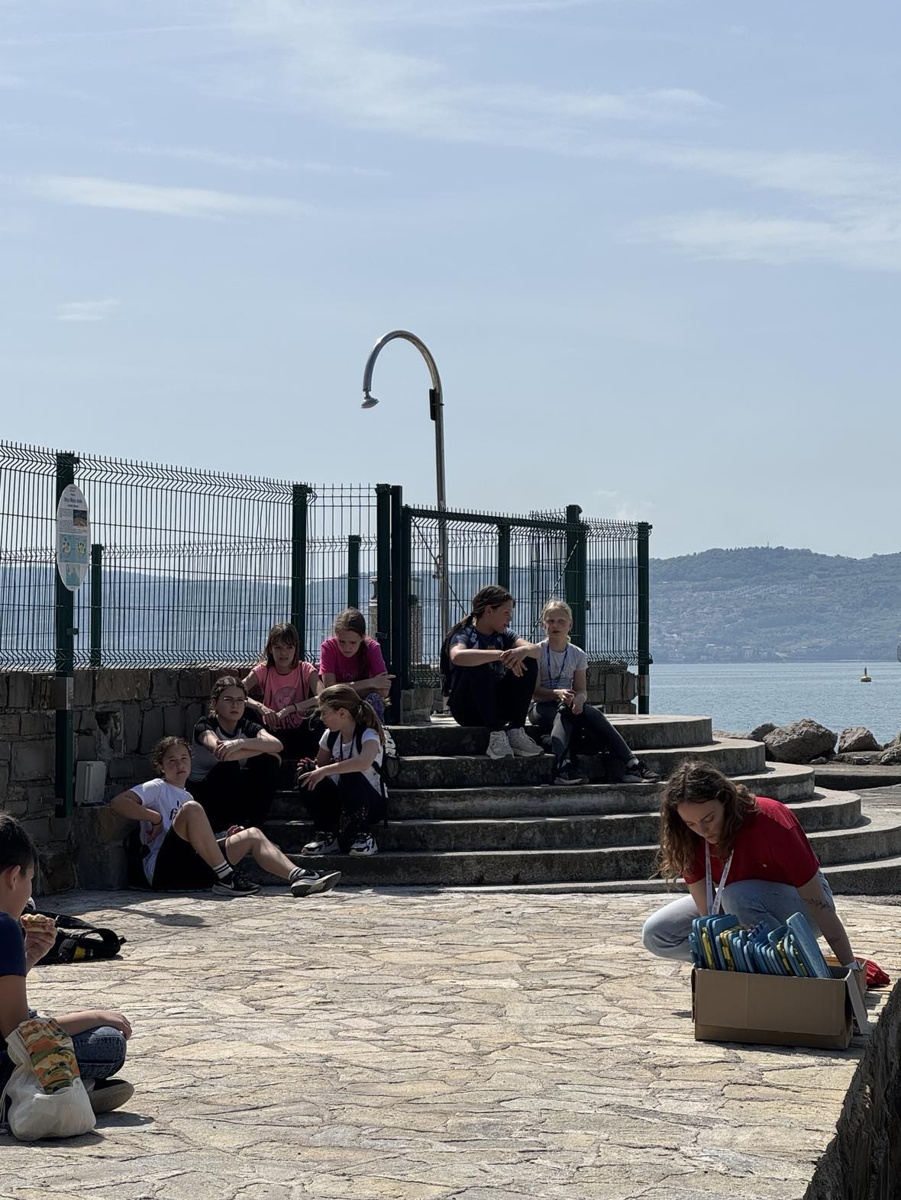 Ko smo prispeli, smo odgovorili na različna vprašanja, vezana na okolje, saj smo praznovali dan Zemlje. Nato smo listke, na katere smo napisali odgovore na vprašanja, nalepili na ograjo. Čakale so nas postaje o vremenu in o morju. Spoznali smo tudi različne oblake in zanimivosti o njih, npr. da oblaki ne morejo biti modre barve in da imajo zelo zapletena imena (cirokumulus, altokumulus, cirus…). Povedali so nam, da modra rakovica krči organizme iz morja in je zelo dobra, če jo pravilno pripraviš. Odpravili smo se do postaje, kjer nas je čakala čistilna akcija. Razdelili smo se v štiri skupine in pričeli z delom. Smeti smo pobirali približno pol ure. Našli smo največ cigaretnih ogorkov. Ko smo končali s čistilno akcijo, smo se za nekaj časa ustavili na igralih. Nato so nam dovolili, da pojemo piškote in rogljičke. Popili smo vodo ali čaj. Odigrali smo tudi igro morske tombole, kjer smo videli tudi prave rdeče morske vetrnice.