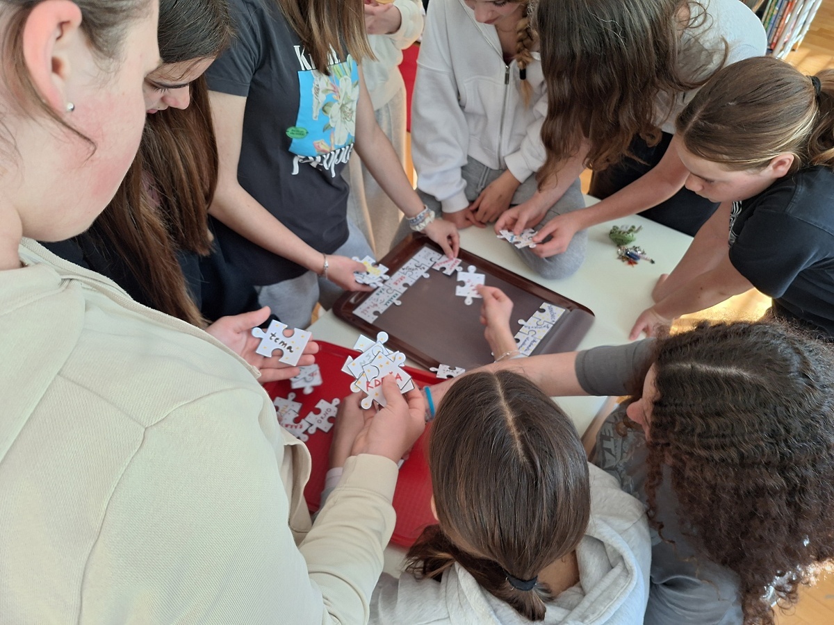 V petek, 17. 4., in soboto, 18. 4., smo na naši šoli izvedli Noč knjige. Letošnja tema je bila življenje in delo Srečka Kosovela. Učenke so najprej spoznale nekaj njegovih pesmi ter njegov način ustvarjanja, nato pa so se tudi same preizkusile v pisanju. Iz besed, ki opisujejo Kosovela, in glavnih motivov njegovih pesmi, so sestavile lastne verze. Nadaljevale so z ustvarjanjem pesmi, pri čemer pa niso pisale klasične pesmi, ampak so uporabile lepljenko, in sicer so črke in besede izrezovale iz časopisov in revij ter jih oblikovale v različne motive.