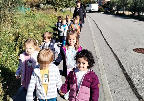 Sprehod otrok iz skupine Rakovica in Školjka