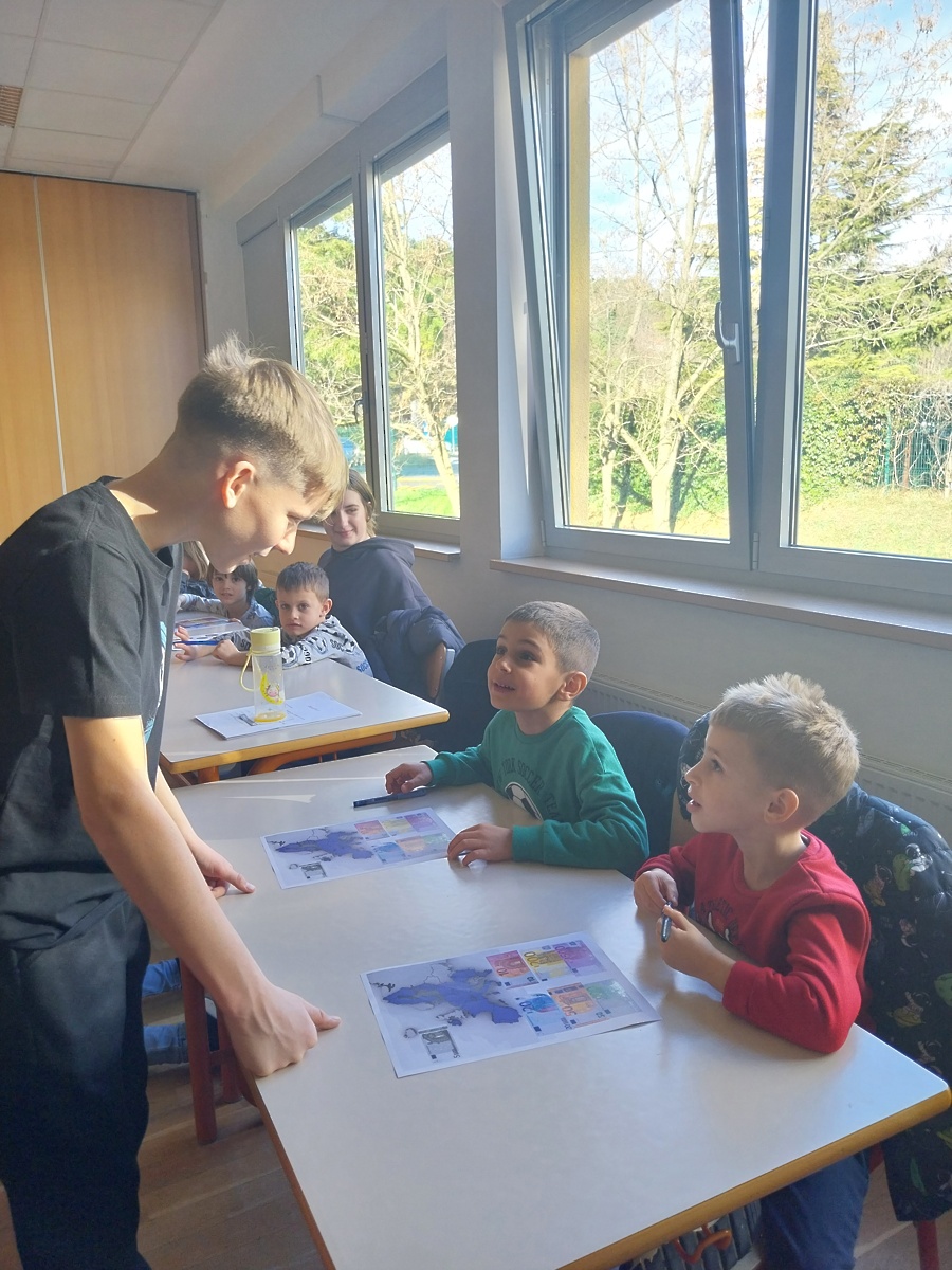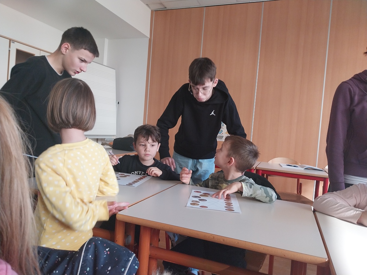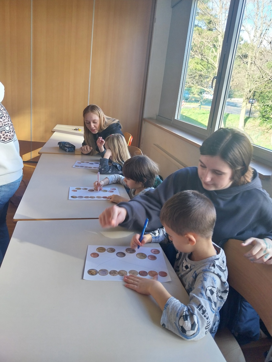 Skupina Delfinov, je obiskala šolo, kjer so sodelovali pri predmetu domovinske in državljanske kulture ter etike. Učitelj Miha Franca je pripravil zanimivo in poučno dejavnost. S pomočjo delovnih listov s kovanci so učenci skupaj z vrtčevskimi otroki reševali nalogo, se pogovarjali in sodelovali pri delu. Skupna dejavnost je otrokom omogočila prijetno izkušnjo šolskega okolja, spodbujala sodelovanje med vrtcem in šolo ter prispevala k razvoju socialnih veščin, občutka pripadnosti in pozitivnega odnosa do učenja.