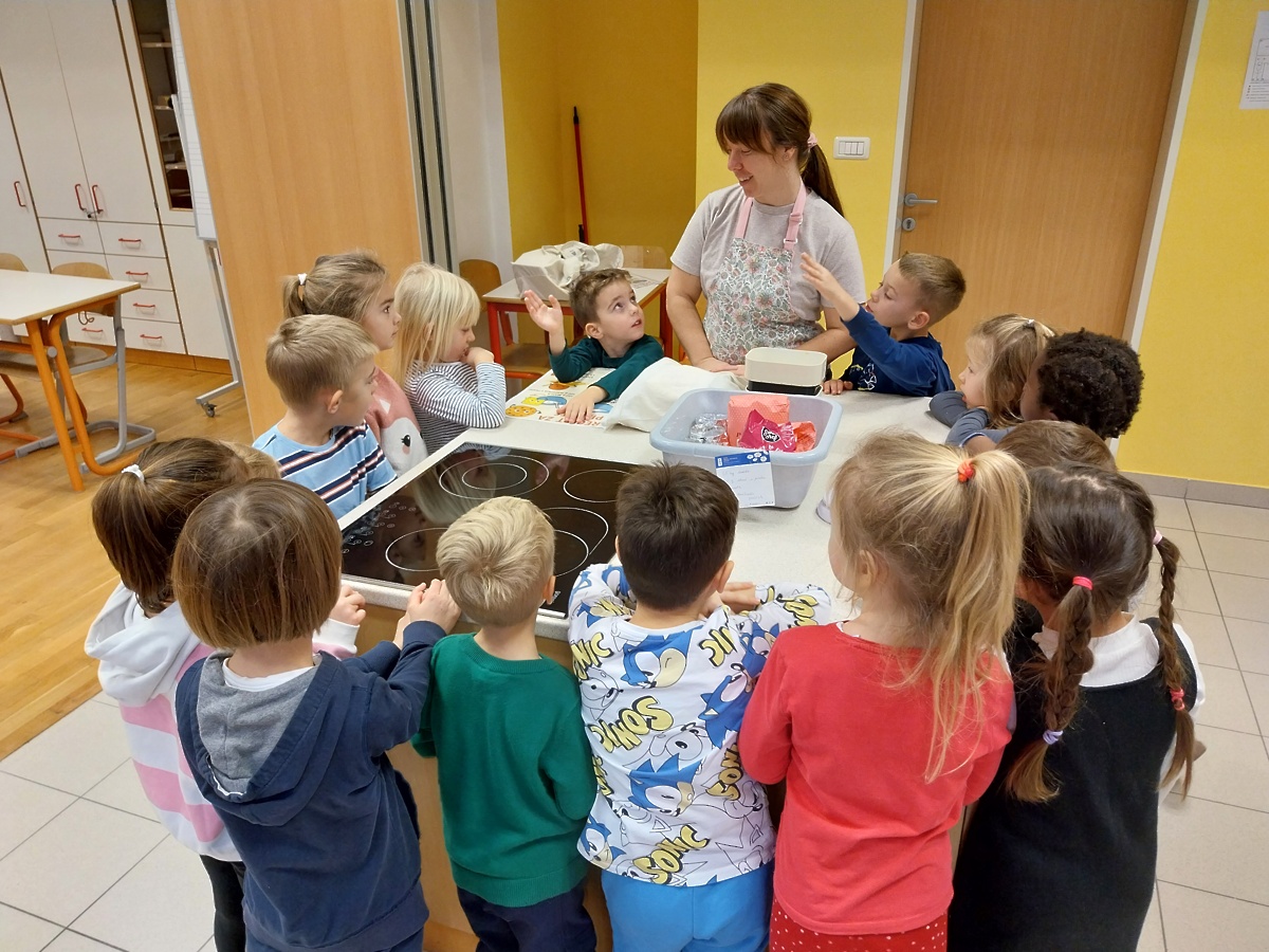 Peka slastnih božičnih piškotov je prav poseben del prazničnega časa, tako kot praznično okrašeno božično drevo in darila. Čeprav je danes mogoče skoraj vse kupiti, je za otroka peka piškotov nepozaben obred, ki mu ostane v lepem spominu. Prav zato smo se peke z veseljem lotili Delfini in vabimo vse družine, da to prijetno izkušnjo ponovijo tudi doma. Nepozabno doživetje peke smo polepšali še na prav poseben način, saj smo v skupino povabili mamico Niko, ki nas je vodila skozi postopek nastajanja božičnih piškotov. Skupaj z otroki je pripravila testo, otroci so ga nato zamesili in razvaljali ter na koncu z modelčki ustvarjali različne oblike. Pri peki smo se zelo zabavali, ob tem pa razvijali ustvarjalnost in fino motoriko. Na koncu pa seveda pojedli čisto vse piškote. Res so bili slastni!