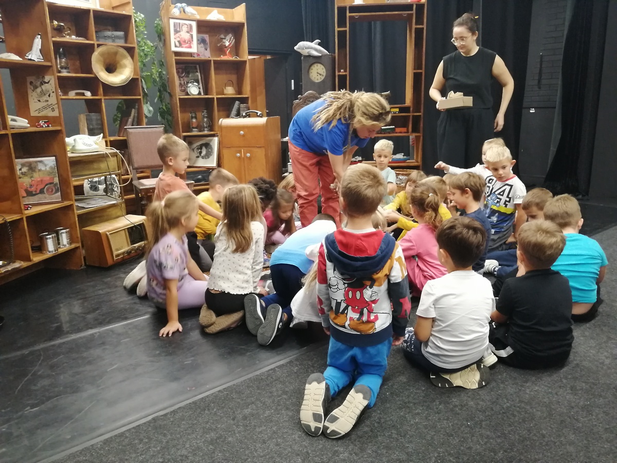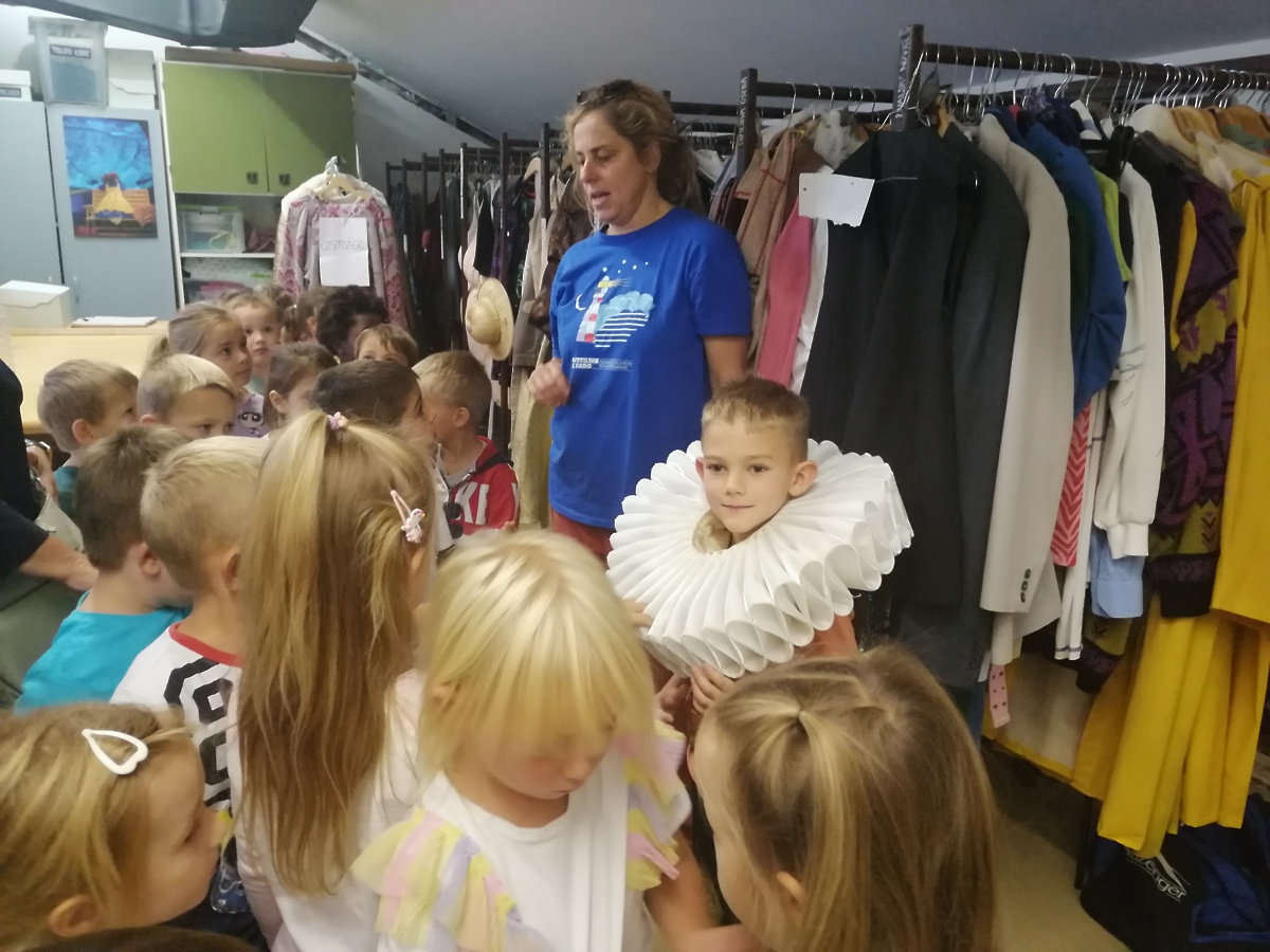 Otroci, ki bodo v naslednjem šolskem letu odšli v šolo, so si v spremstvu režiserke Renate Vidič ogledali tudi zaodrje, se seznanili z besedami, ki so povezane z gledališkim delom in odkrivali skrivnosti gledaliških prostorov.