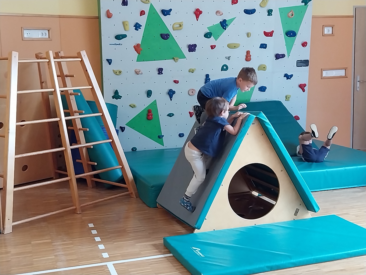 Mednarodni dan športa smo obeležili tudi v vrtcu. Pripravili smo poligon, ki je potekal po hodniku vrtca, na igrišču pa nekaj štafetnih iger, vsaka skupina je izvajala vaje v svoji težavnostni stopnji. Dobro smo se razgibali in poleg skupnega poligona otrokom ponudili športne prvine tudi po oddelkih.