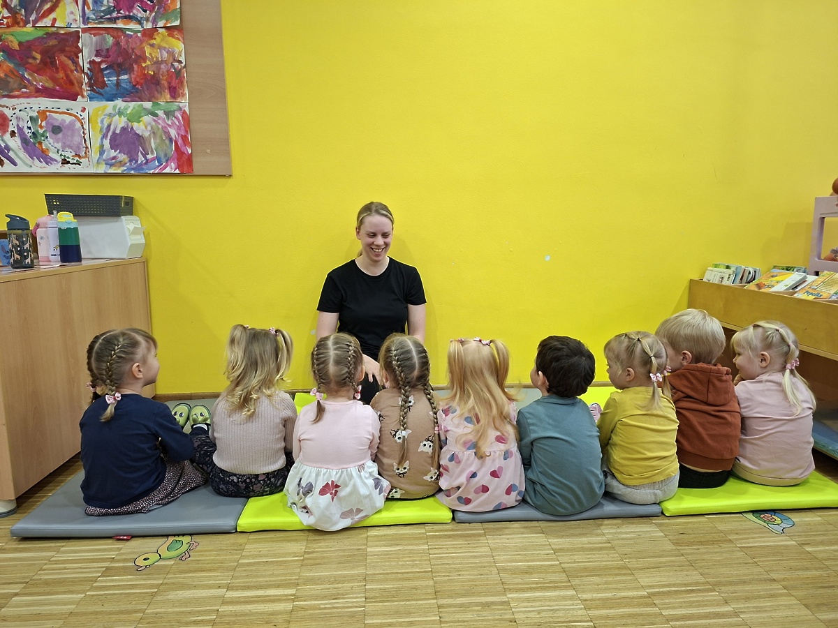 Obiskala nas je mamica od Rubi. Otrokom je povedala, kaj dela frizerka in pokazala nekaj predmetov, ki jih potrebuje pri svojem delu. Vsi otroci so od doma prinesli svoje glavnike. Deklicam je naredila frizure po njihovih željah, dečke pa je lepo počesala. Na koncu nam je pustila igračo - glavo in pripomočke za frizure ter otrokom razdelila nalepke. Skupaj smo še zapeli in zaplesali.
