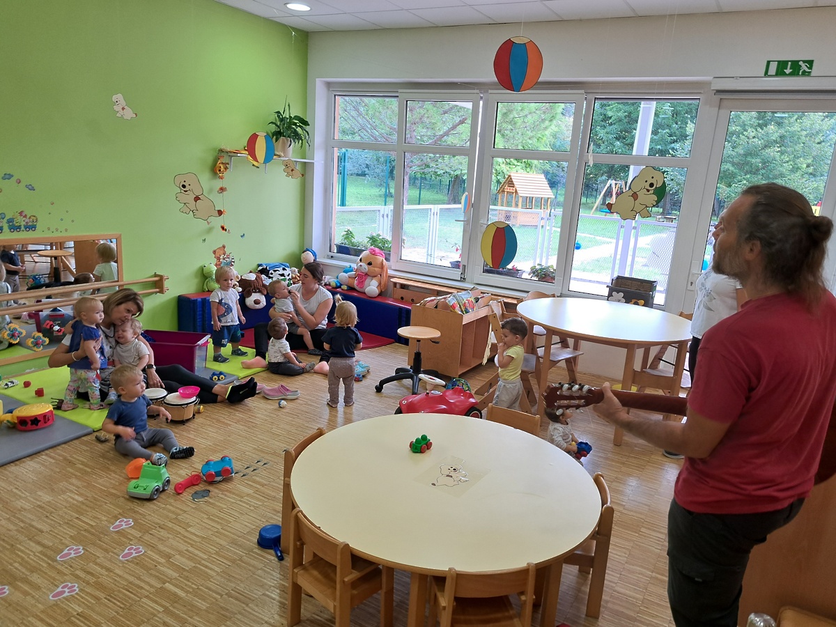 Veliko smo peli, igrali na boben in ropotulje, pihali milne mehurčke, se igrali na terasi, solzice pa posušili s cartanjem.