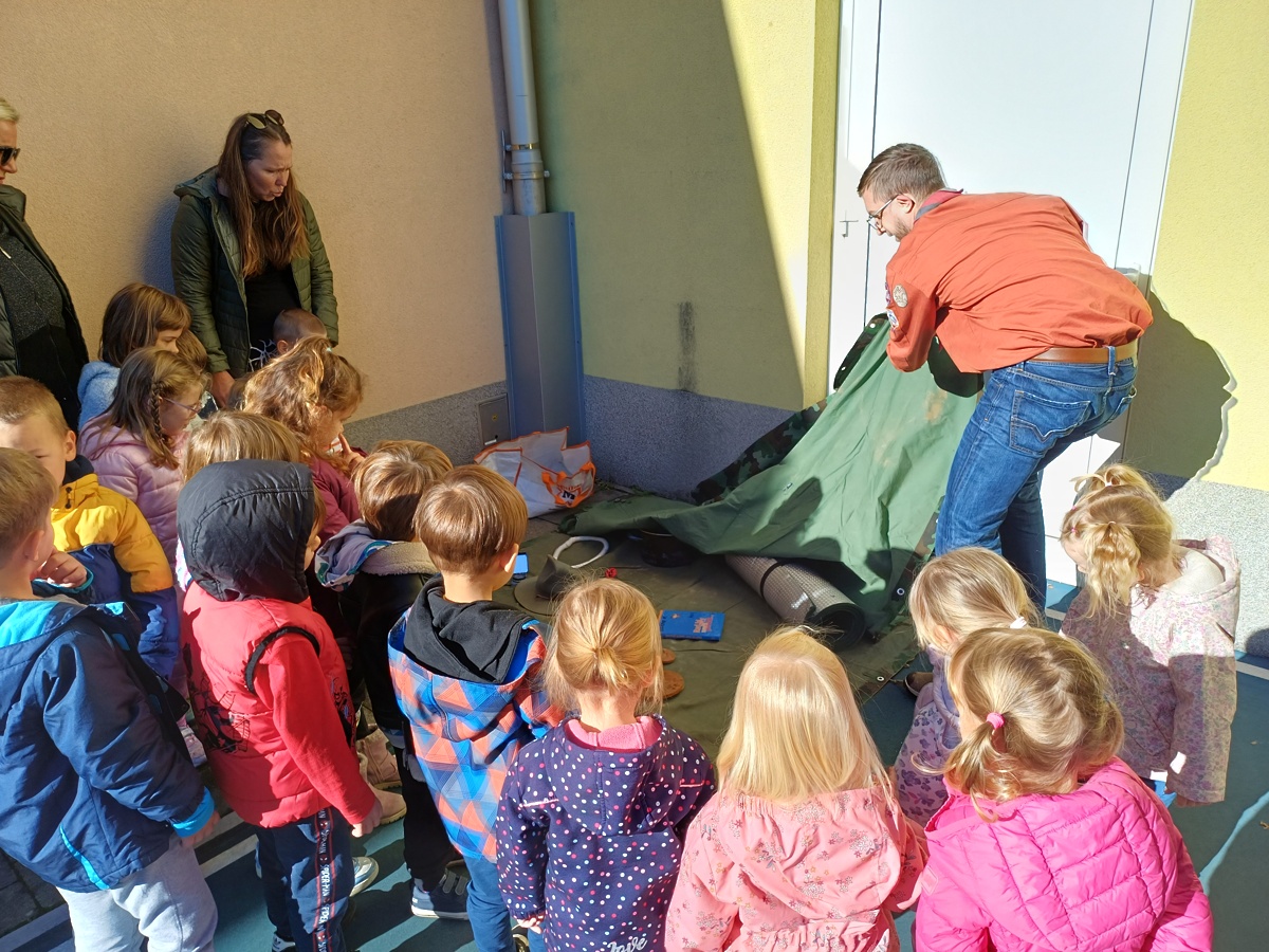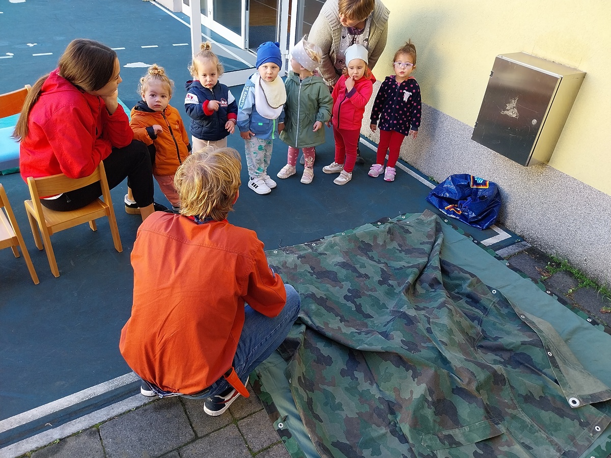 Skavti iz župnije Ankaran so v torek predstavili svoje dejavnosti, pokazali so nam pripomočke, ki jim pomagajo, da v naravi zakurijo ogenj, kako si pomagajo, da jim ponoči ni hladno… Naučili so nas nekaj iger - bansov, s katerimi se povezujejo.