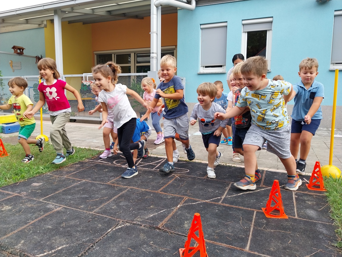 Dan slovenskega športa vsako leto obeležimo z gibalnimi dejavnostmi. Tako utrjujemo zavedanje, da sta gibanje in šport pomemben del zdravega življenjskega sloga. Otroci so se letos spopadli s krosom – tekom »čez drn in strn«. Vsi so se pogumno podali na progo, uspešno preskočili vse ovire in igrivo prisopihali do cilja. Tam so skupaj zarajali ob ritmih otroški pesmi in tako zaokrožili športno obarvano dopoldne.
