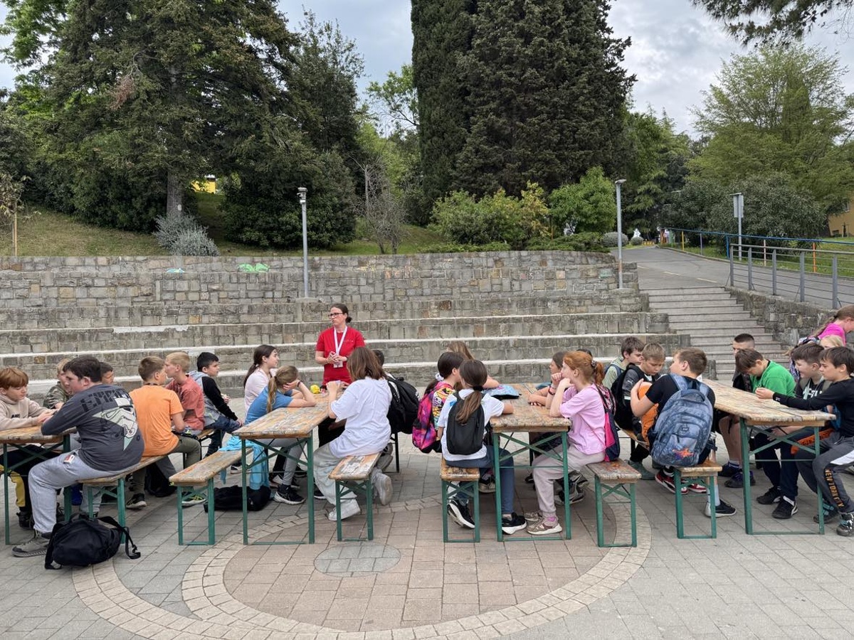 V torek, 22.4.2025, smo se učenci petih razredov odpravili v zdravilišče na Debeli Rtič. Odpravili smo se peš, saj je Debeli Rtič blizu naše šole. Hodili smo pol ure. Ko smo prišli, smo se začeli spominjati šole v naravi leta 2023.
