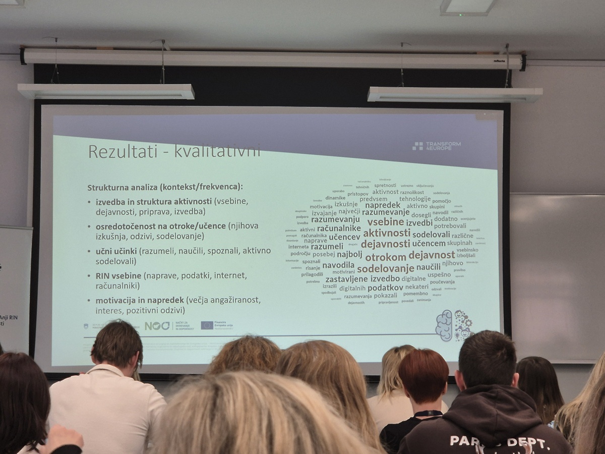 Člani razvojne in projektne skupine B-RIN smo se v petek, 6. februarja 2026, udeležili zaključne konference projektov B-RIN (Razvoj temeljnih vsebin in znanj RIN v vrtcih in osnovni šoli) in MARiNKA (Mladostniki s temeljnimi znanji RIN so Kreatorji prihodnosti). Na konferenci smo predstavili primer dobre prakse uvajanja temeljnih vsebin računalništva in informatike, Polžek uči ločevati odpadke, ki na otrokom prijazen način spodbuja računalniško mišljenje in trajnostno ravnanje.
