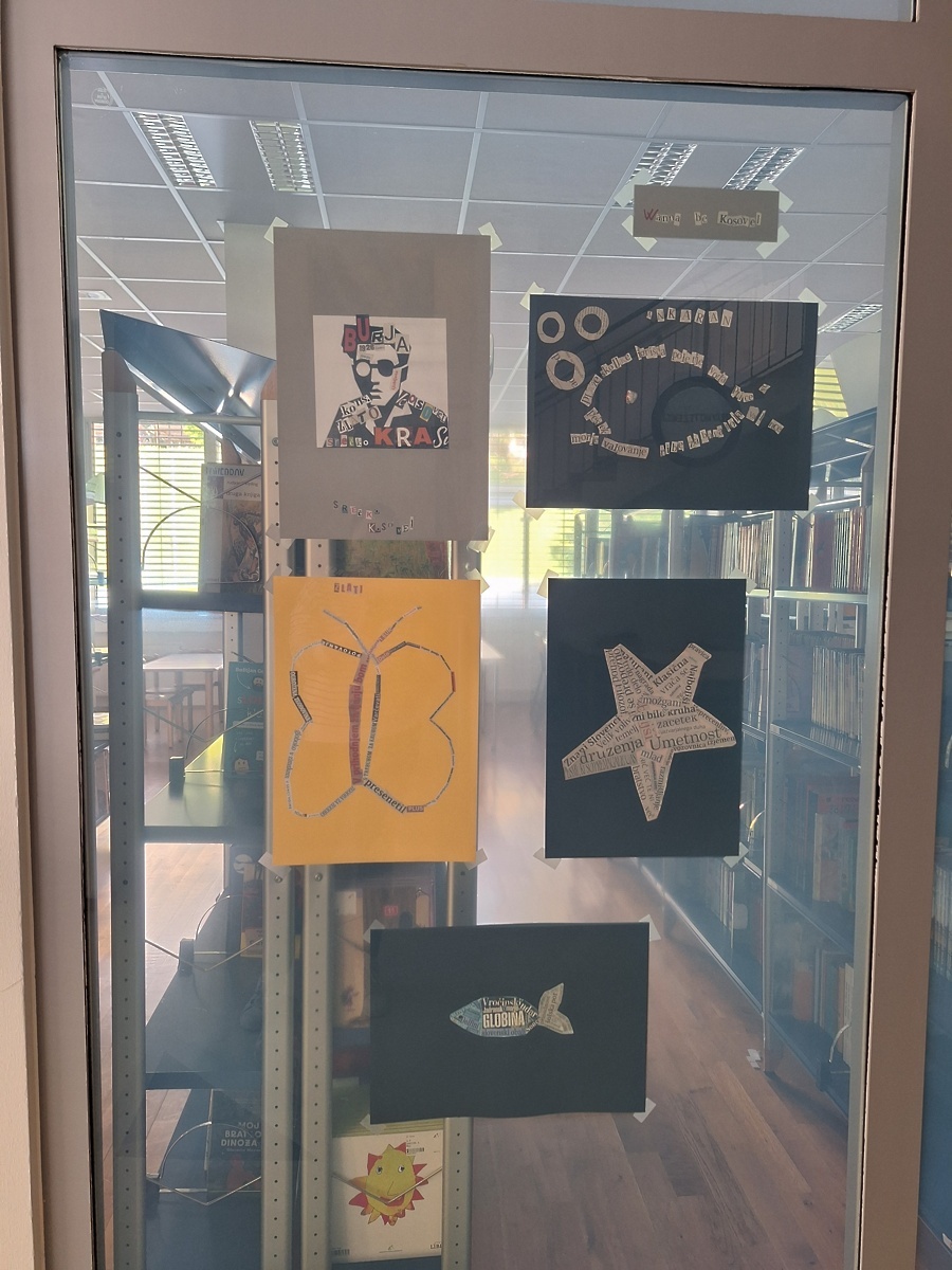 V petek, 17. 4., in soboto, 18. 4., smo na naši šoli izvedli Noč knjige. Letošnja tema je bila življenje in delo Srečka Kosovela. Učenke so najprej spoznale nekaj njegovih pesmi ter njegov način ustvarjanja, nato pa so se tudi same preizkusile v pisanju. Iz besed, ki opisujejo Kosovela, in glavnih motivov njegovih pesmi, so sestavile lastne verze. Nadaljevale so z ustvarjanjem pesmi, pri čemer pa niso pisale klasične pesmi, ampak so uporabile lepljenko, in sicer so črke in besede izrezovale iz časopisov in revij ter jih oblikovale v različne motive.