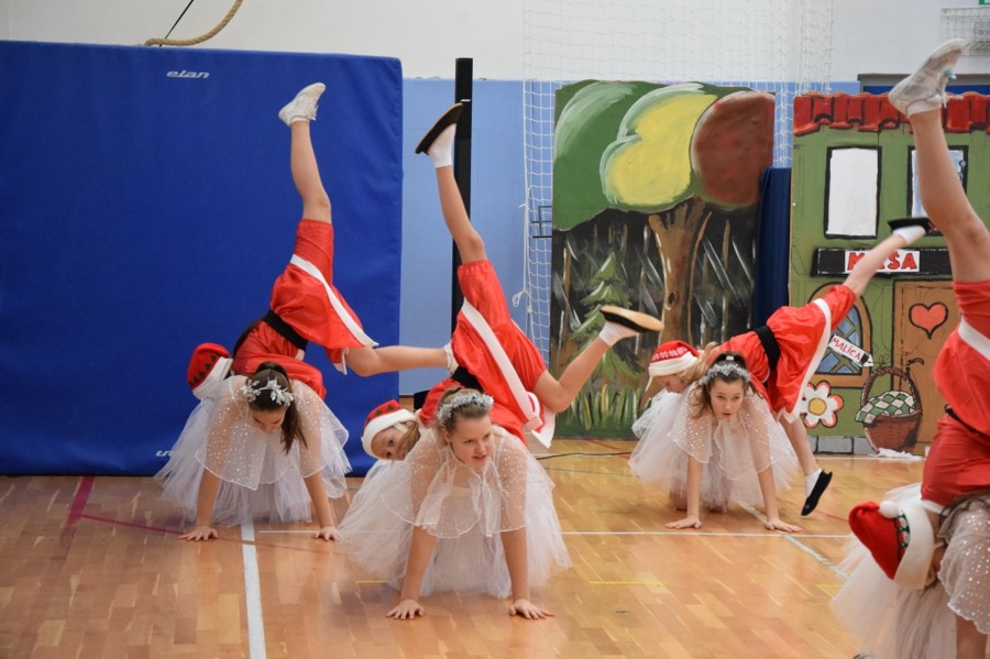 V predprazničnem času smo tudi na naši šoli učencem prve triade in malčkom iz vrtca pričarali čarobne trenutke z obiskom plesno akrobatske skupine FLIP in dedka Mraza.
