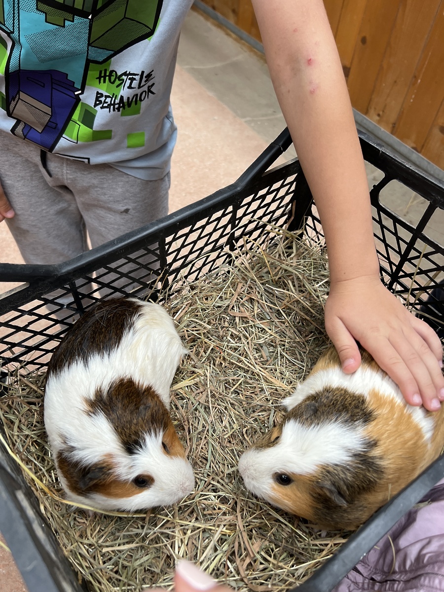 Čas nam je hitro minil. Ogledali smo si njihove živali; morska prašička, kunca, alpake in konje. Alpake smo lahko hranili, morska prašička in kunca pa smo božali. Preizkusili smo se v pastirskih igrah, plezanju po plezalni steni in lokostrelstvu. Odpravili smo se na bližnji hrib Rotovc in na poučno pot okoli jezera Cerknica. Obiskali smo muco Copatarico in si ogledali njeno hišico.