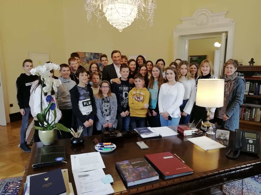 V torek, 19. 3. 2019 so naši nadarjeni in nekateri vzorni učenci, skupaj z OŠ Hrvatini, obiskali predsedniško palačo v Ljubljani. Pod strokovnim vodstvom g. Marka Borisa Sakside smo si ogledali prostore, kjer deluje predsednik države. Imeli smo srečo in se z njim tudi osebno srečali ter poklepetali v njegovi pisarni.
