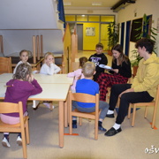 Učenci 8. in 9. razredov so prebrali pravljico mlajšim učencem in skupaj z njimi izdelali motiv iz pravljice, ki krasi šolske panoje.