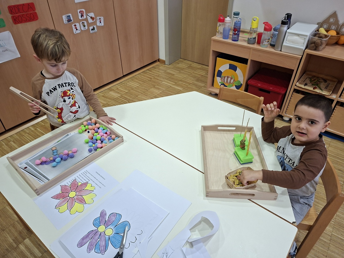 V mesecu februarju smo v skupini želvic poleg priljubljenega plastelina in namiznih iger, dobili tudi dve Montessori delavnici, ki sta zelo priljubljeni. Morda pa nas kmalu čaka še kakšna novost.