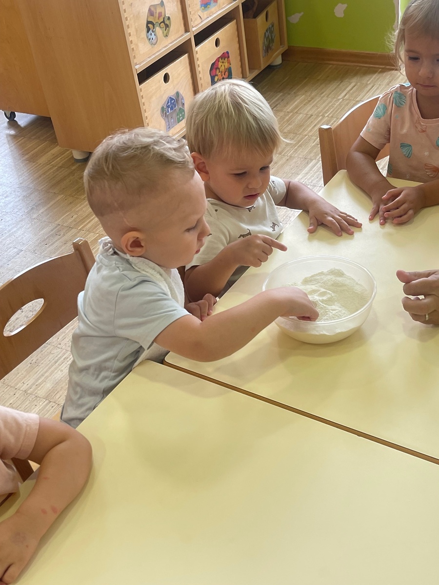 Pod našim drevesom nas je že ob prihodu v našo novo igralnico pričakal velik ježek. Radi ga opazujemo in nosimo po igralnici. Ko nas je prvič pozdravil, smo se kar malo ustrašili, vendar počasi nam je prirastel k srcu in ga kar pogrešamo, ko se nam skrije. Odločili smo se, da si naredimo vsak svojega ježka. Najprej smo potipali moko, sol, olje in vodo. Nato pa smo gnetli, dokler testo ni postalo gladko. Malo smo ga še pobarvali in gnetli naprej. Lepo nam je bilo, ko se je testo dotikalo naših prstov. Poskusili smo izdelati različne izdelke. Na koncu smo izdelali vsak svojega ježka. Da je čimbolj podoben pravemu, smo mu dodali tudi pikajoče iglice, kar je bilo zelo zabavno. Pred igralnico smo naredili razstavo, da še drugi uživajo v naših izdelkih.