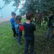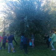 Danes smo imeli Delfini prav poseben dan. Pobirali smo oljke. Naša oljka je lepo obrodila in dela je bilo kar veliko.