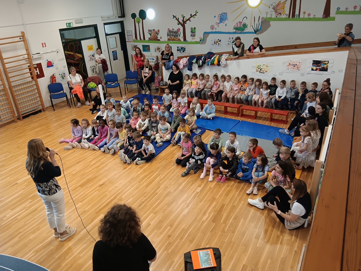 Otroci iz skupine Ribe In Delfini smo obiskali vrtec Škofije. Po uvodni predstavitvi obarvani s petjem in plesom, smo se razdeljeni po skupinah preizkušali v različnih dejavnostih. V prijateljskem duhu smo preživeli čudovit dopoldan in si obljubili, da bomo enkraten dogodek še kdaj ponovili.