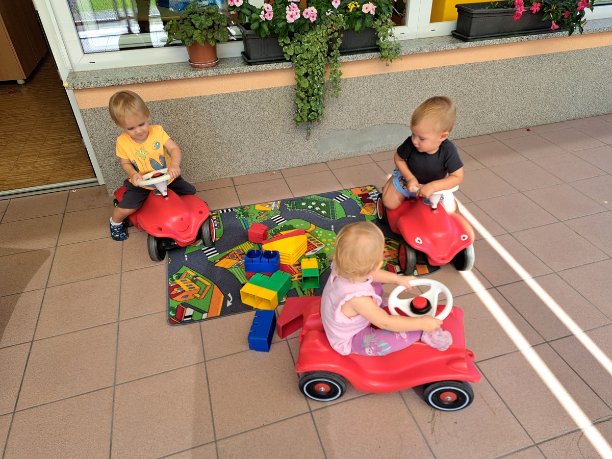 Veliko smo peli, igrali na boben in ropotulje, pihali milne mehurčke, se igrali na terasi, solzice pa posušili s cartanjem.