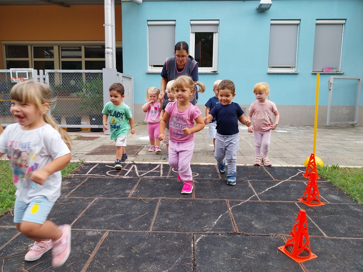 Dan slovenskega športa vsako leto obeležimo z gibalnimi dejavnostmi. Tako utrjujemo zavedanje, da sta gibanje in šport pomemben del zdravega življenjskega sloga. Otroci so se letos spopadli s krosom – tekom »čez drn in strn«. Vsi so se pogumno podali na progo, uspešno preskočili vse ovire in igrivo prisopihali do cilja. Tam so skupaj zarajali ob ritmih otroški pesmi in tako zaokrožili športno obarvano dopoldne.